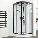 закрытая кабина • угловая • двери раздвижные • гидромассаж • тропический душ • электронное управление • вентилятор • 90x90x217 см
