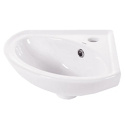 Материал: фаянс • Установка: подвесная • Форма: угловая • Отверстия для монтажа смесителя: 1 отверстие по центру • Отверстие контроля перелива: есть • Глубина: 36 см • Ширина: 36 см • Вес: 7 кг