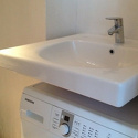 Плохо придумана система слива. Во-первых, из-за пластиковой трубы под слив раковину приходится устанавливать над машинкой см на 5 выше, во-вторых, при пользовании умывальником в стиральную машинку попадает вода через сливной шланг. Раковина довольно тяжелая, поэтому её нужно как следует крепить к стене, дюбилей кстати в комплекте не было.