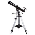 Ахроматический рефрактор с 80-миллиметровым объективом. На оптические поверхности нанесено многослойное просветляющее покрытие. Эта модель предназначена для изучения объектов Солнечной системы. Оптическая труба устанавливается на экваториальную монтировку EQ2 с механизмами тонких движений по обеим осям. Высота треноги регулируется.