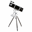 Большеапертурный рефлектор Ньютона для визуальных наблюдений и астрофотографии. Параболическое зеркало формирует яркую картинку без хроматических и сферических аберраций. В комплект входят окуляры 25 мм и 10 мм. Экваториальная монтировка снабжена механизмами тонких движений. Стальная тренога регулируется по высоте.