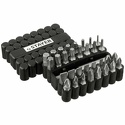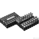 Биты подробно25 мм: PH0, PH1, PH2 (2 шт.), PH3, PZ0, PZ1, PZ2 (2 шт.), PZ3, T8, T10, T15, T20, T25, T27, T30, T40, H1.5, H2, H2.5, H3, H4, H5, H6, H8
