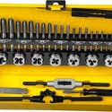 КомплектацияПлашки; Метчики (7 комплектов ×3):Метрическиестандартный шаг, ммМ3 М4 М5 М6 М8 М10 М120.5 0.7 0.8 1.0 1.25 1.5 1.75Оснастка:Метчикодержатель М3–М12Плашкодержатель 25 мм: М3–М12Аксессуары:РезьбомерОтвертка SL3