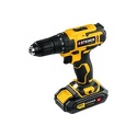 Тип: дрель-шуруповерт, пистолетная • Обороты: 350/1350 об/мин • Патрон: быстрозажимной, Ø 10 мм • Функции: ударный режим, реверс, подсветка, тормоз двигателя • Питание: аккумулятор, 20 В, Li-Ion