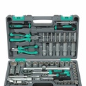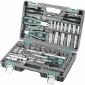 Комплектация- Ключ трещоточный 1/4.- Ключ трещоточный 1/2.- Головки торцевые 1/2" 10, 11, 12, 13, 14, 15, 16, 17, 18, 19, 20, 21, 22, 24, 27, 30, 32.- Головки торцевые 1/4" 4, 4.5, 5, 5.5, 6, 7, 8, 9, 10, 11, 12, 13, 14.- Головки свечные 21 мм и 16 мм.- Удлинители 1/2: 125 и 250 мм.- Удлинители 1/4: 100 мм и 50 мм.- Кардан на 1/2 и 1/4.- Вороток Т-образный 1/4.- Головка торцевая удлиненная 1/2 ” 14, 15, 17, 19, 22.- Головка торцевая удлиненная 1/4” 6, 7, 8, 9, 10, 11, 12, 13.- Бокорезы 175 мм.- Пассатижи 175 мм.- Переходник бит 1/4->1/4.- Переходник 1/2F - 3/8M.- Отвертка-держатель 1/4.- Отвертки SL6 x 100 PH2 x 100.- Биты Т10, Т15, Т20. SL3, SL4. PH1, PH2.
