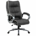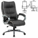 Справиться с повышенной нагрузкой помогают усиленный механизм качания с толщиной металла до 3 мм и специальными поддерживающими распорками, прочный газпатрон высшего 4-го класса, массивный каркас из фанеры толщиной 15 мм, прочное металлическое основание. Обивка выполнена из экокожи высокого качества - современного материала на хлопковой основе. Благодаря тканой основе и пористому полиуретану экокожа отлично пропускает воздух, что положительным образом сказывается на комфорте во время эксплуатации.