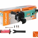 Необходима универсальная шлифмашина для домашнего и профессионального использования? Угловая шлифмашина Sturm AG9515E переворачивает все представления об универсальных строительных инструментах, ведь в ней прекрасно соединены большая мощность, невысокая цена и прекрасные технические характеристики. Особенности модели Наличие электронной регулировки частоты вращения двигателя повышает качество работы инструмента при обработке или резке различных материалов. Преимущества модели Модель имеет боковую рукоятку, которая может устанавливаться в трех различных положениях, что облегчает использование инструмента в различных положениях. Фиксированная клавиша старт/стоп позволяет фиксировать кнопку пуск, что необходимо для непрерывной продолжительной работы инструмента. Корпус редуктора оборудован металлическим защитным кожухом, что увеличивает эффективность теплоотвода и предотвращает перегрев инструмента при продолжительных нагрузках. Небольшой вес в 2 кг и компактные размеры облегчают продолжительное использование инструмента. Защитный кожух оборудован системой быстрого съема и установки, что исключает необходимость использования дополнительного инструмента.