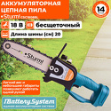 аккумуляторная • бытовая • 18 В • шаг цепи: 3/8 дюйма • длина шины: 20 см • без аккумулятора в комплекте