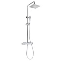 Устройство: душевая система • Смеситель: термостатический • Ручной душ (душевая лейка): настройки 1 шт • Верхний душ (тропический): размер 202 мм, настройки 1 шт • Комплектация: ручной душ, верхний душ, смеситель, стойка, шланг, крепление ручного душа