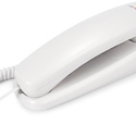 Тип: проводной телефон • Категория: стандартный • Набранные номера: 1 номеров • Расположение кнопок: на базе • Цвет: белый • Аксессуары: настенное крепление