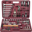 Набор: 77 шт • Ключи: комбинированные, шестигранные • Головки: 6-ти гранные головки, свечные • Ключей-трещоток: 2 шт • Хранение: пластиковый кейс