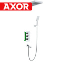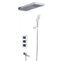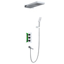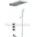 Устройство: душевая система • Смеситель: термостатический • Ручной душ (душевая лейка): размер 80 мм, настройки 3 шт • Верхний душ (тропический): настройки 1 шт • Комплектация: ручной душ, верхний душ, смеситель, шланг, крепление ручного душа