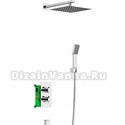 Устройство: душевая система • Смеситель: термостатический • Ручная лейка: настройки 1 шт • Верхний душ: размер 250 мм, настройки 1 шт • Комплектация: ручной душ, смеситель, шланг, крепление ручного душа