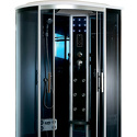 Закрытая кабина, полностенная, левосторонняя, двери раздвижные, материал поддона: акрил, материал стенок: стекло, тропический душ, вертикальный гидромассаж, габариты (ШхВхД): 85x220x120 см