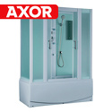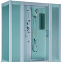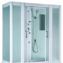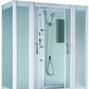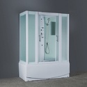 Закрытая кабина, полностенная, комбинированная с ванной, двери раздвижные, материал поддона: акрил, материал стенок: стекло, тропический душ, вертикальный гидромассаж, габариты (ШхВхД): 80x215x148 см