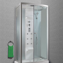 Закрытая кабина, полностенная, двери раздвижные, материал поддона: акрил, материал стенок: стекло, тропический душ, вертикальный гидромассаж, габариты (ШхВхД): 95x230x110 см