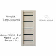 Нет бренда Дверь межкомнатная Экошпон 800*2000 мм. Лиственница белая, чёрные стёкла (комплект: полотно + коробка 2,5 шт, + наличник 5 шт.)