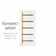 Нет бренда Дверь межкомнатная Экошпон 600*2000 мм. Лиственница белая, чёрные стёкла (комплект: полотно + коробка 2,5 шт, + наличник 5 шт.)