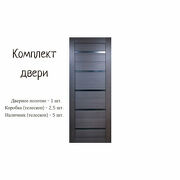 Нет бренда Дверь межкомнатная Экошпон 400*2000 мм, Венге, Чёрные стёкла (комплект: полотно + коробка 2,5 шт, + наличник 5 шт.)