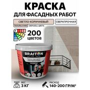 Краска ВД фасадная BRAITON Премиум Сверхпрочная 3 кг. Цвет Светло-коричневый (Tikkurila H 480) для наружных и внутренних работ для дерева по бетону, для минеральных поверхностей и штукатурке