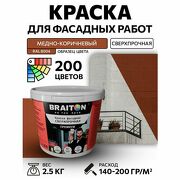 Краска ВД фасадная BRAITON Премиум Сверхпрочная 2,5 кг. Цвет Медно-коричневый RAL 8004 для наружных и внутренних работ для дерева по бетону, для минеральных поверхностей и штукатурке,