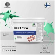 5 509 руб. В магазин Краска Malare "ГОСТ" фасадная по дереву, бетону и штукатурке, для камня и кирпича, без запаха матовая, снежная мята, (2.7л - 3.9кг)