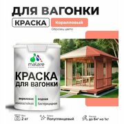 Резиновая краска для вагонки Malare для дерева, для фасадов и интерьера с антисептическим эффектом, быстросохнущая, без запаха, полуглянцевая, коралловый, 2 кг