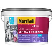 1 717 руб. 1 808 руб. В магазин Краска акриловая (АК) Marshall Akrikor Фасадная силикон-акриловая влагостойкая моющаяся матовая бесцветный 2.5 л 3 кг