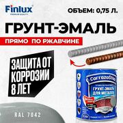 1 030 руб. В магазин Универсальная грунт-эмаль 3в1 по металлу и ржавчине Finlux F-148, глянцевая, ral 7042, 0,75 л