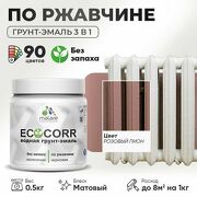 Грунт-Эмаль 3 в 1 по ржавчине Malare EcoCorr/ краска по металлу антикоррозионная/ для металлических поверхностей, акриловая быстросохнущая без запаха, матовая, розовый пион, 0,5 кг