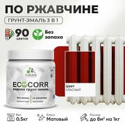 Грунт-Эмаль 3 в 1 по ржавчине Malare EcoCorr/ краска по металлу антикоррозионная/ для металлических поверхностей, акриловая быстросохнущая без запаха, матовая, красный, 0,5 кг