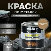 1 223 руб. В магазин HUSKY KLONDIKE Грунт-эмаль 3 в 1, краска по металлу молотковая, по ржавчине, декоративная, медь (250мл)