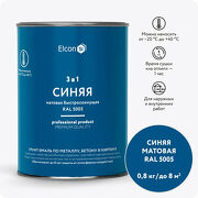 1 072 руб. В магазин Грунт-эмаль по ржавчине Elcon 3 в 1 синяя 0,8кг.