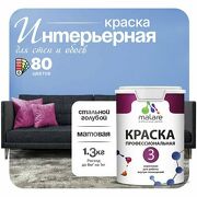 1 020 руб. В магазин Краска акриловая (АК) Malare Professional №3 для стен и потолков влагостойкая моющаяся матовая стальной голубой 1 л 1.3 кг