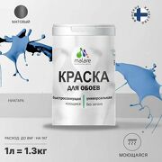 Краска Malare для стен и обоев, потолка и минеральных поверхностей, быстросохнущая моющаяся без запаха матовая, ниагара, (1л - 1.3кг)