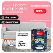 1 079 руб. В магазин Акриловая полуматовая моющаяся интерьерная краска для стен, потолка, обоев, без запаха, быстросохнущая Finlux СВ-25 WorldTrend (0.75 л, Розовая орхидея J329)