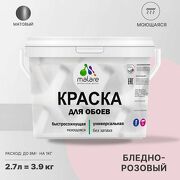 2 491 руб. В магазин Краска Malare для стен и обоев, потолка и минеральных поверхностей, быстросохнущая моющаяся без запаха матовая, бледно-розовый, (2.7л - 3,9кг)