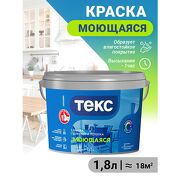 ТЕКС Краска моющаяся для стен и потолков TEKS Profi водно-дисперсионная профи, база A, 1,8л