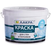 Краска водно-дисперсионная Лакра Для стен и потолков матовая белоснежный 14 л 14 кг