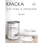 WEISS Краска интерьерная, для стен и потолков, моющаяся, матовая, 1.1л, белая