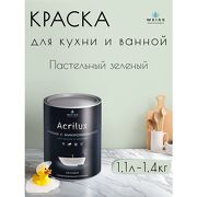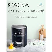 WEISS Краска акриловая, моющаяся для стен и влажных помещений, кухни и ванной комнаты 1.1л DEC784 Пастельный зеленый