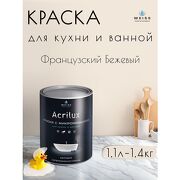 WEISS Краска акриловая, моющаяся для стен и влажных помещений, кухни и ванной комнаты 1.1л DEW382 Бежевый серый