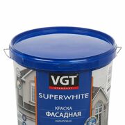 Краска водно-дисперсионная, VGT, акриловая, фасадная, матовая, супербелая, 7 кг