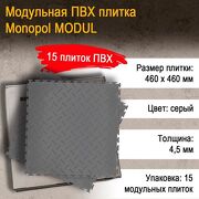 7 300 руб. 9 550 руб. В магазин Monopol MODUL модульная плитка ПВХ (цвет: темно- серый; размер 4.5х460х460мм), 15 шт