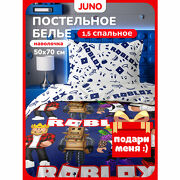 2 021 руб. В магазин Juno Комплект постельного белье Поплин, 1 5 спальный, 1 наволочка 50х70, Roblox blue Роблокс