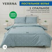 2 115 руб. В магазин Комплект постельного белья YERRNA, 1-спальный 150x200, перкаль, серо-голубой