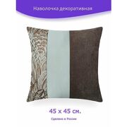 T&I Наволочка - чехол для декоративной подушки на молнии "Дина" Ш 45 х В 45 см, голубой, коричневый