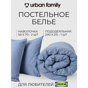 Постельное белье полукомплект Евро, наволочки 50х70, Urban Family Деним, пододеяльник и наволочки на молнии, икеа 100% хлопок