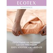 Простынь на резинке однотонная Моноспейс (аналог икеа), Персиковый, 1-спальное, 90х200 ,100% хлопок, сатин, Ecotex