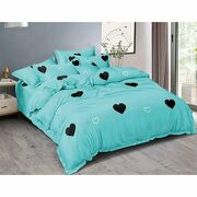 Love Комплект Постельного Белья Евро Бирюзовый Сердечки / Евро / Простыня 220x240 / Пододеяльник 200x200 / Наволочки 70x70-2